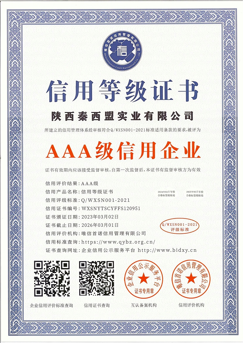 AAA級信用企業(yè)證書
